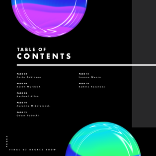 Everyone has been working very hard to create a Catalogue spread, showcasing their work this year as well as a short bio and project description.